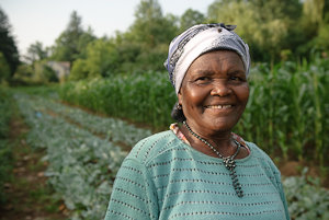 Adrien convinced Justine to pose for him near her plot. She was very tolerant of both of us interrupting her morning chores. Here is one of the shots from this morning: