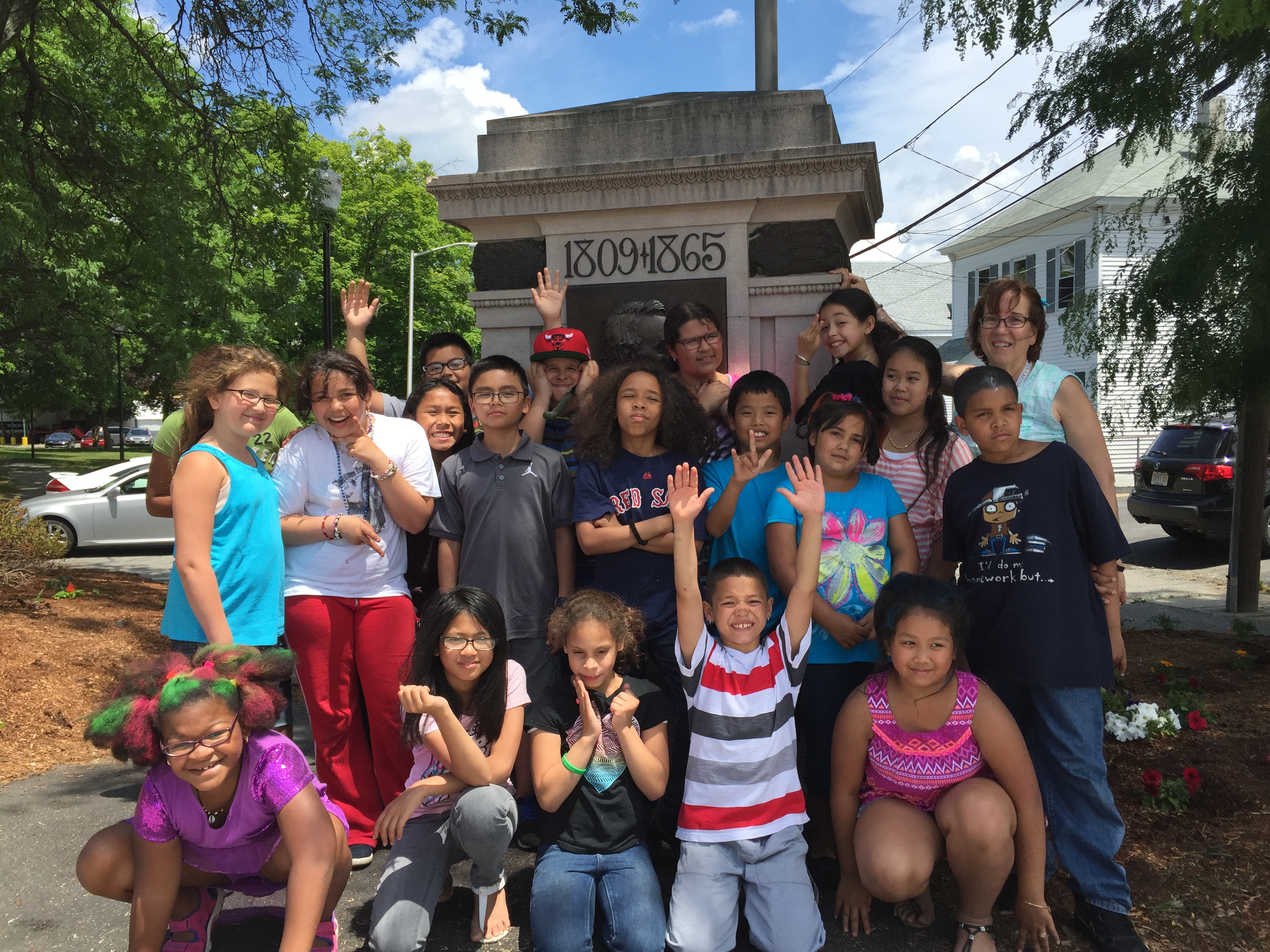 monument erected by Lowell school children in the early 1900s and a small and pleasant green space in a neighborhood surrounded by businesses and multi-family houses right off one of the main roads in and out of the City of Lowell.