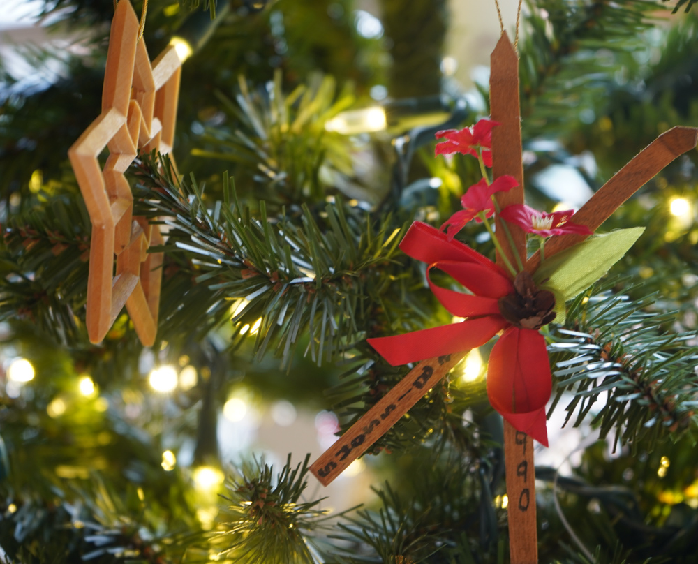 Many of the ornaments on the tree are from former students and can be traced back to my years as a preschool aid. A number of ornaments are gifts from friends and colleagues. Some of the most cherished are ones made by our son when he was young, and now a few created by our granddaughter have been added to our collection of keepsakes.