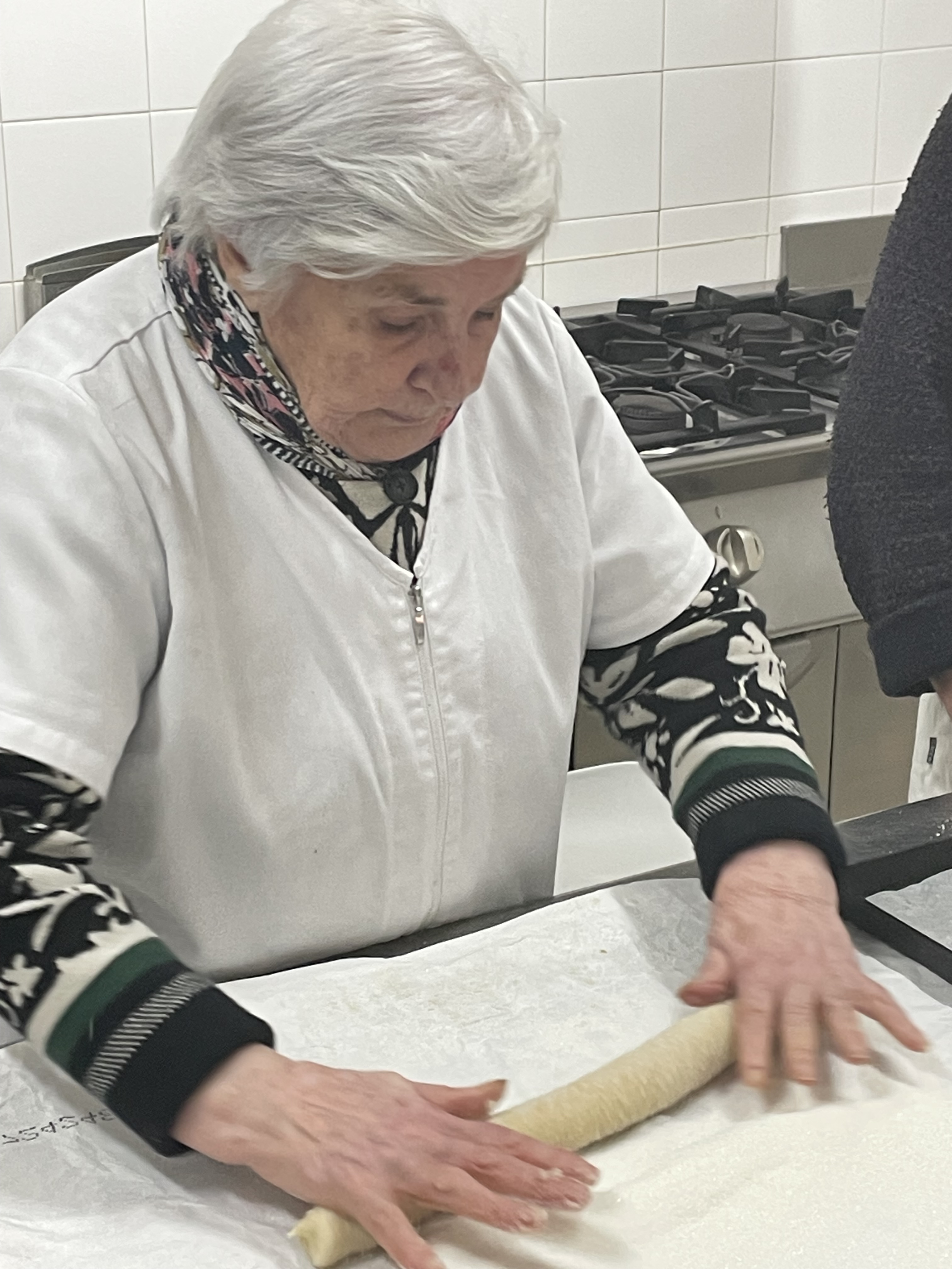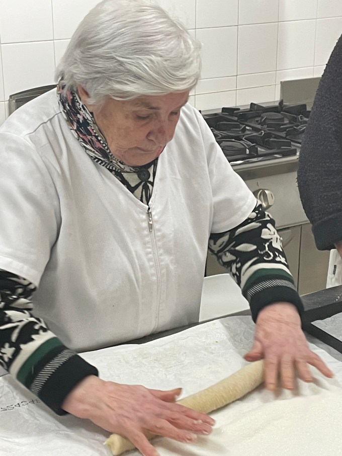 Although her obvious sense of humor belies the tough upbringing that was Maria Grammatico’s early life, the cooking class we enjoyed was among my favorite activites in Sicily. At a very young age Maria Grammatico’s mother, widowed with six children, had to arrange for Maria to be taken in at a local convent. It was while at this convent, Maria, working long hours in the bakery, learned the pasticceria skills that would in her mid-20s allow her to start her own shop, a bakery that is still operating today.