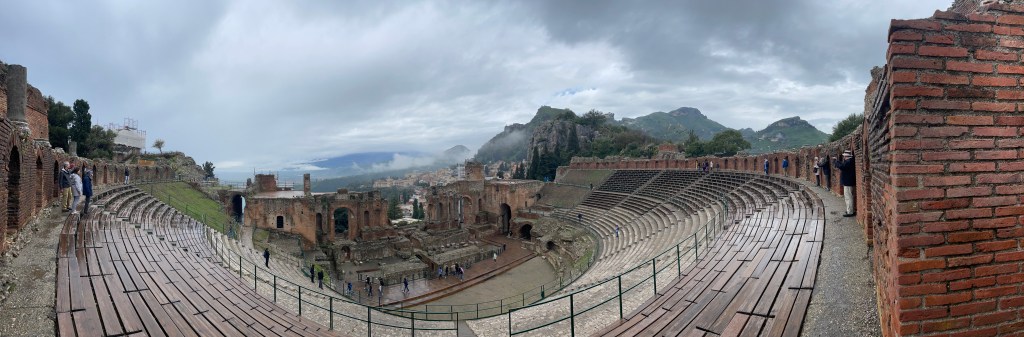 For most of our time in Taormina it rained, sometimes softly but often with a vengeance. Despite the weather, the draw to this part of Sicily was obvious: it’s beautiful. And crowded with tourists, even in March.