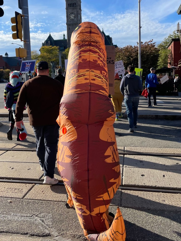 After attending rallies like yesterday’s No Kings (October 2025 version), the take-away is that there are a lot of like-minded people who are unhappy with the way things have been going. Here in Lowell, Massachusetts, a respectful crowd listened to speakers, music, and cheered and chanted. Afterwards the group wended their way from Boarding House Park, up Bridge Street, down Merrimack around Arcand and back to the Boarding House via French. Everyone stayed on the sidewalks, which can be a feat by itself, no pun intended.