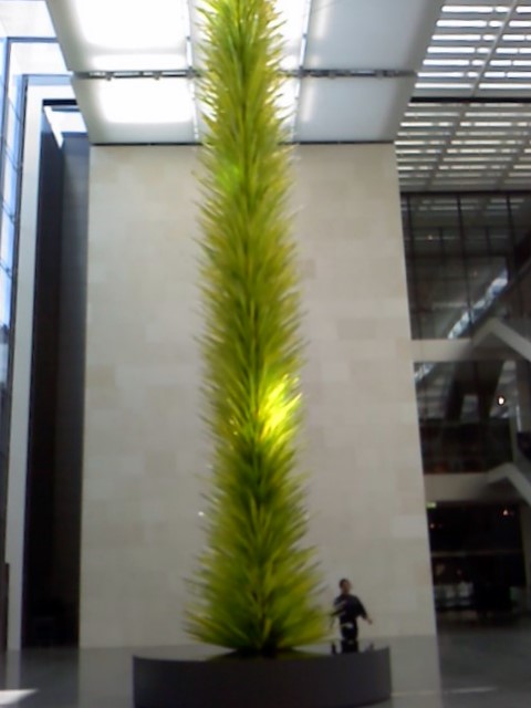 Next stop was the MFA. We have been members here for quite a while, but even so, trying to figure out parking and entrances is challenging. Not to mention that membership levels (and rules!) have been changed. Our first stop in the Museum was the Shapiro Visitor Center. The MFA is about to open a special exhibit featuring Dale Chiuly‘s blown glass installations – the Shapiro has one installation, a whimsical lime green tree-like structure, in the lobby. I’ll be back on Friday to see the entire exhibit.