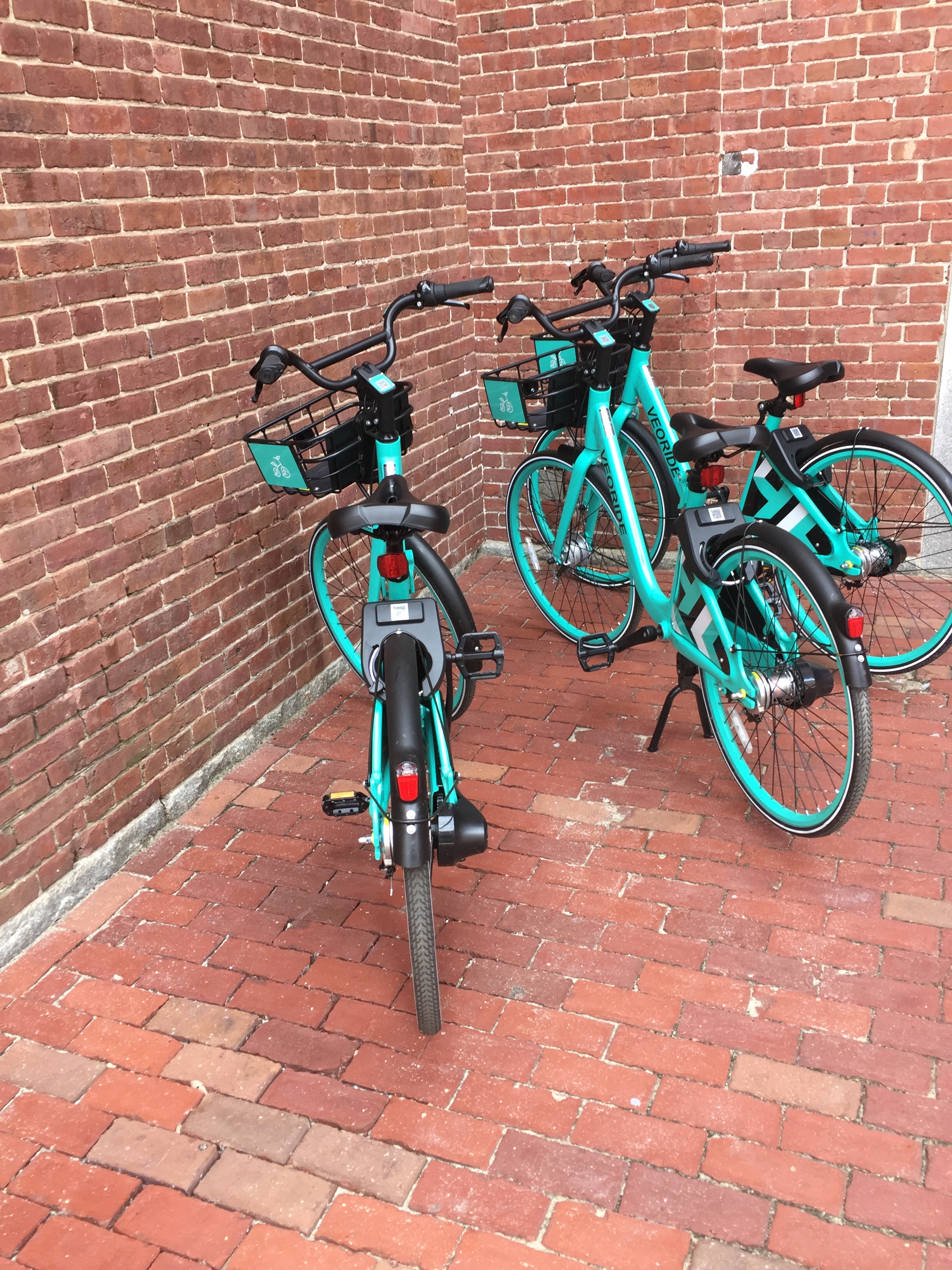 During the summer month I hadn’t noticed the bicycle racks near Lucy Larcom Park. Now, with school back in session and students populating the LHS campus, the racks are surprisingly well-used and it’s easy to notice the parking spaces reserved for students with a 2-wheel ride. All was calm at this time just before the dismissal bell. The bicycles stand ready for their owner to jump on and pedal off to the next destination – hopefully using the bike lanes and not the sidewalk.