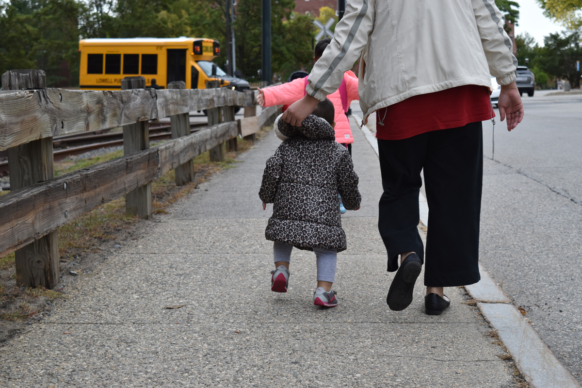 It is not unusual for families to be waiting at pick-up or drop-off spots as elementary students need to be met at the bus stop by a family member or designated guardian. That is certainly true in Downtown Lowell.