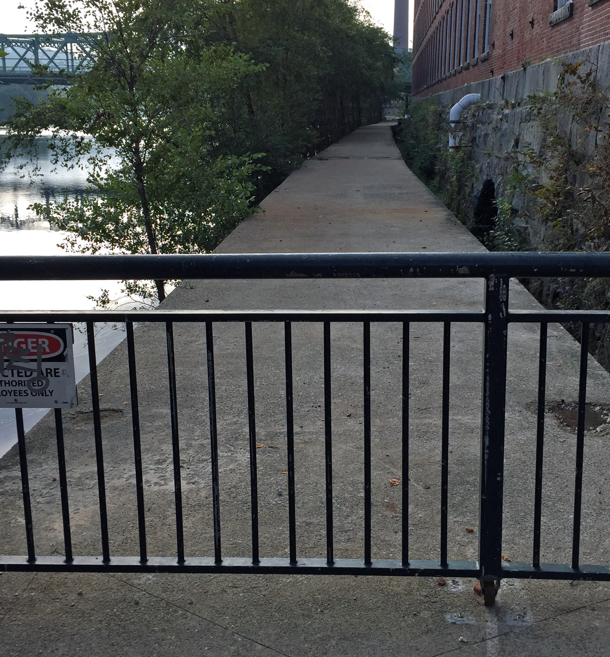 This short path forms a connection between Riverwalk Way and the Lawrence Dam/Lawrence Wasteway. On one side are the Renaissance on the River buildings (formerly Lawrence Manufacturing) and on the other, Perkins Residences/Lofts.